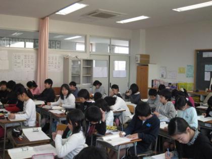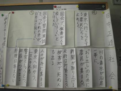 国語の授業でした、田中正造の伝記を読んで生き方を考えます。6,7場面の読み取りを行い、自分と比べて正造の生き方をどう考えるかどう思うか考えていました。卒業を間近に控えた6年生にとって、人のために尽くした正造の生き方に共感することはとても大事なことです。2組の子どもたちは、生き方を自分なりにしっかり考えていました。