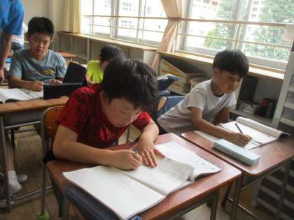 4年生の算数では「わり算の筆算」に挑戦しています。今日はまとめを行っていて、類似問題を繰り返し取り組みました。子どもたちは「計算の仕方」は理解しています。あとは、時間が掛かっても「正確に計算」ができるようにすることです。「分かった」が「できる」になるよう支援していきます。