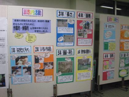西口の昇降口前をご覧いただけたでしょうか。1年間、算数の学力向上をめざして取り組んできた成果を掲示しています。私たちは、算数が楽しくよくわかる授業にしてきました、。確かに、子どもたちの力は伸びてきました。どうぞ、ご覧いただきご意見ご感想をお聞かせください。