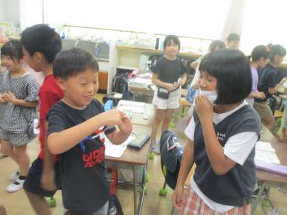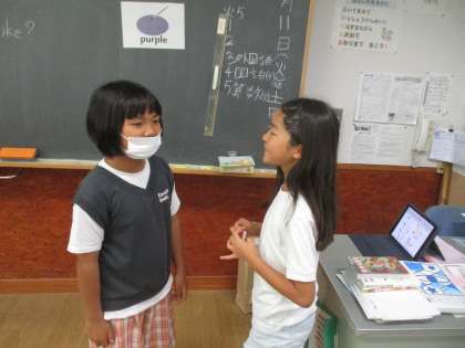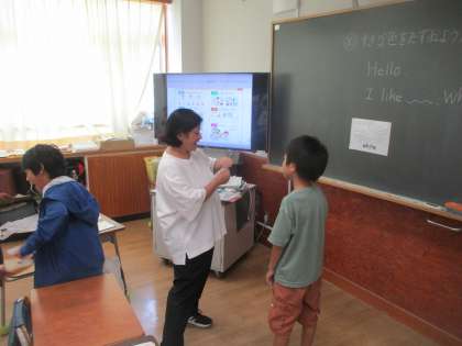 3年生の外国語活動を参観しました。今日は好きな色を聞き合う学習をしました。中学年ではゲームなどの活動を多く取り入れて英語表現を覚えるというより「英語表現に親しんで、楽しむ」ことを大切にしています。