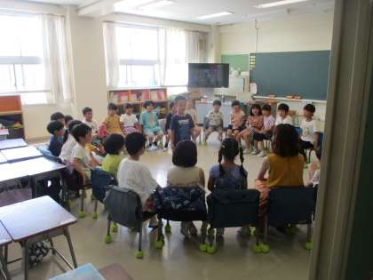 1年生の教室から笑い声が聞こえてきました。1学期みんな頑張ったね会をしていました。子どもたちの表情から楽しさが伝わってきました。明日は1学期終業式です。