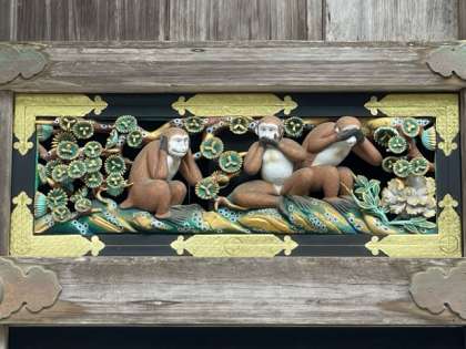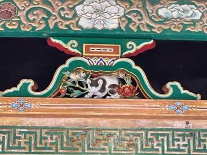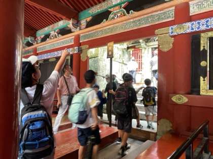 家康のお墓を見学するために207段の階段を登りました。鳴き竜の音も楽しみました。日光はお天気よく、青空が広がっています。とても暑い日です。水分をこまめにとりました。