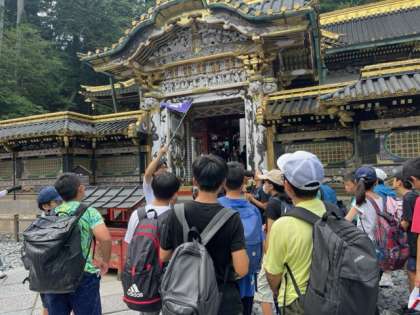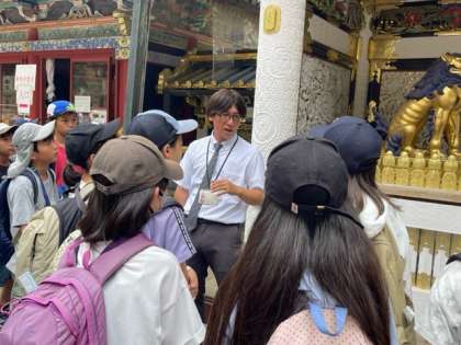 東照宮での子どもたちの様子です。案内の方の興味深いお話をよく聞いています。