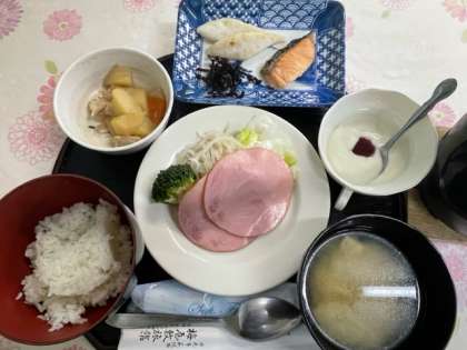 7時。食事の時間です。いつも5分前行動ができる6年生。元気の源になる朝食をしっかりいただきました。その場で料理していただいたお豆腐は手作りだそうです。お味噌汁にはかんぴょうと日光名産の食材も並びました。