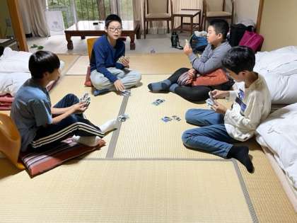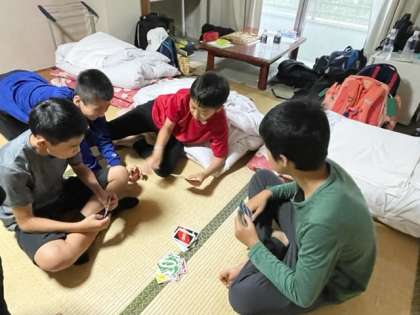 雨と暑さで行程を少し変えたため、予定より1時間ほど早く宿舎に帰ってきました。みんなで仲良く、ゆっくり過ごしています。部屋の上履きがきれいにそろっていて感心しています。