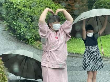 出発の時、雨が降ってきました。最後のお別れの瞬間です。雨の中、お見送りをしていただきました。