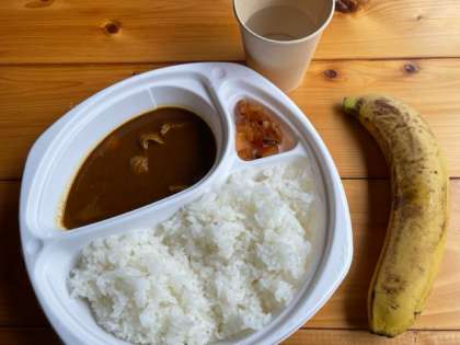 日光江戸村で過ごす時間もあっという間に過ぎました。お昼はカレーとバナナです。おいしくいただきました。