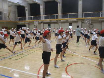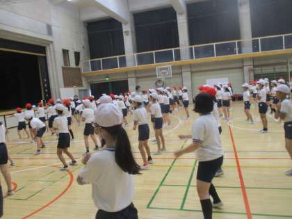 6年生の運動会練習の様子です。6年生は1年生から5年生までの表現をダイジェストで行うとのこと。今日は5年生で表現した「ソーラン節」を練習していました。キレキレの踊りを楽しみにしています。