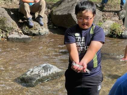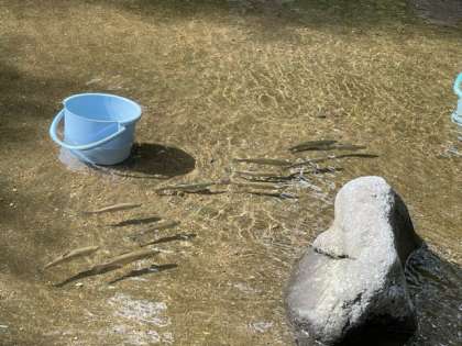 マスは新鮮なうちに、子どもたちの活動と並行してお料理してくださっています。。夕食でいただきます。自然に感謝の気持ちを忘れないようにしたいです。