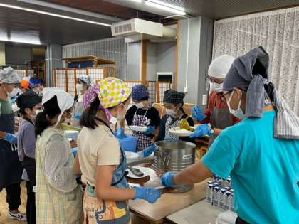 18時30分、夕食です。15分前に食事係が集合して、夕食の準備や配膳をしました。みんなの大好きなカレーとマスつかみ体験でとったマスの塩焼きです。おいしくいただきました。