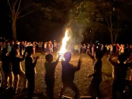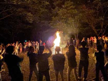 勇気の火、絆の火、感謝の火、協力の火が点火され、歌やゲーム、ダンスなど、みんなで盛り上がりました。