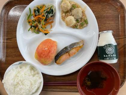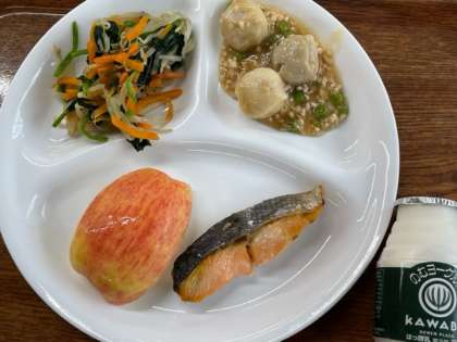 朝ごはん、おいしくいただきました。川場村で有名なリンゴと飲むヨーグルトもおいしかったです。