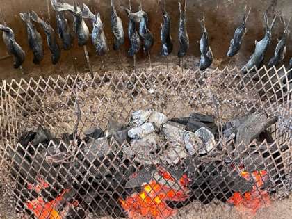 マスつかみ体験後は、しっかりお礼。感謝の気持ちを伝えます。