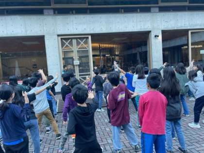 6時30分に朝会を行いました。朝会担当の子どもたちが前に立ち、じゃんけん大会と運動でで元気のスイッチを入れました。
