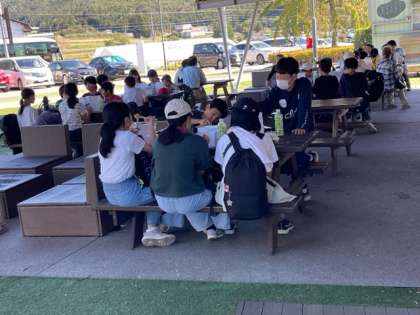 田園プラザに着くと、待ちに待ったお弁当の時間です。川場でみんなで食べる最後の食事です。