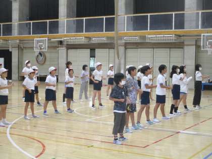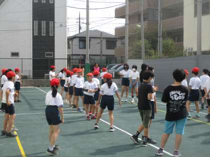 団長を中心に練習しています。運動会の盛り上がりには欠かせない応援団。プログラムNO1は応援合戦です。赤も白もファイト、ファイト、ファイト!