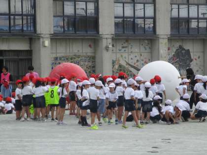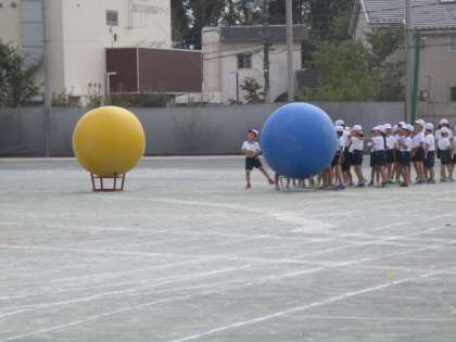 2年生運動会練習「めざせ!ビックな転がスター(大玉転がし)」
