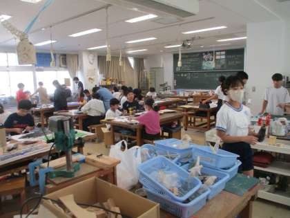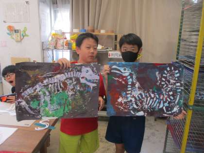 6年生の図工の様子です。ダイナソー(恐竜)を表しました。骨を作って画用紙に針、絵の具をぬりました。生き生きとしたダイナソーに感心しました。