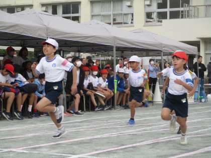 1年生の徒競走。50mの直線を精一杯走り抜けました。2年生の徒競走です。2度目の運動会。昨年より心も体も大きくなり見事な全力ダッシュ!