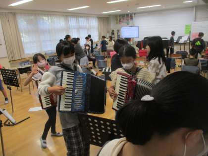 5年生の音楽を参観しました。今日は、合奏「威風堂々」の練習をしました。多くの楽器をそれぞれが練習をしていました。完成が楽しみです。