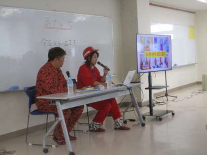 今日はPTA家庭教育学級が行われました。講師としてお笑い芸人の「赤プル」さんをお迎えしました。(旦那様もお笑い芸人で夫婦でチャイムというコンビを組まれています)内容は「今日から出来る防災講座」と題して、笑いを絡ませながら防災教育、防災講座をされました。楽しく学ぶことができました。関係者の皆様、ありがとうございました。