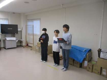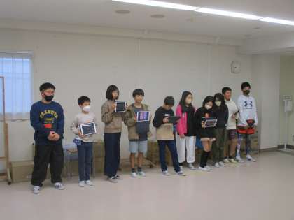 今朝の集会では「学習発表会作品展紹介集会」と題して、各学年の作品を紹介し合う集会を行いました。作品展のテーマは「あふれる思い ひろがる夢 塚戸美術館」です。各学年、見どころを楽しく、分かりやすく紹介することができました。
