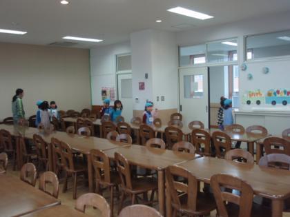 学校を案内しました。園児は、興味しんしんで。