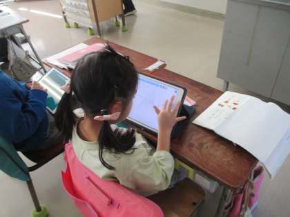 1年生の国語の授業を参観しました。今日は「ことばって、おもしろいな」という学習で「もののなまえ」について考えました。例えば、にんじんや大根、キャベツなどの一つ一つの名前とそれらをまとめると「野菜」ということ、犬やねこ、パンダはまとめると「動物」ということなどを学びました。大人にとっては簡単なことも、1年生の子どもたちにとっては難しいことです。一つずつ学習しています。
