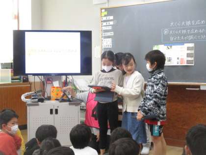 3年生の総合的な学習時間を参観しました。今日は、今まで調べてきた大蔵大根についてグループごと発表しました。大蔵大根の歴史、調理方法、育て方など、大蔵大根の良さを伝えていました。3年生の皆さん、大蔵大根について勉強になりましたよ。ありがとう!