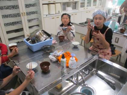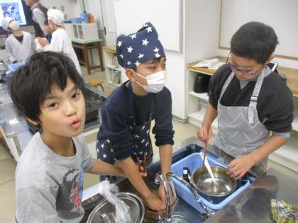 5年生の家庭科「調理実習」の様子です。鍋を使ってご飯を炊き、煮干しから出汁をとって味噌汁を作りました。子どもたちは本当に安全に気を付けて調理をし、片付けも一生懸命でした。家庭科の調理実習は食べることを目的とはしていません。あくまで試食です。調理の計画を立てたり、準備や片付けをしたりすることが大切です。そうは言っても、子どもたちは出来立てのご飯と味噌汁のおいしさに感動していました。