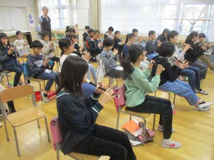 5年生の音楽を参観しました。威風堂々のリコーダー演奏を練習しました。とてもきれいな音色を聴かせてくれました。さすが、5年生です!