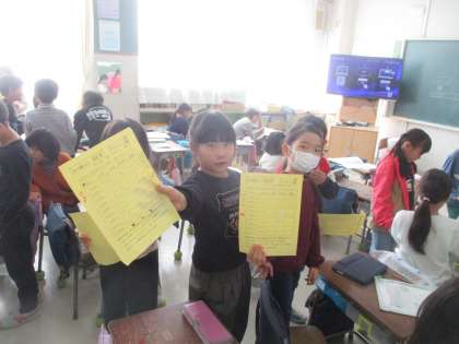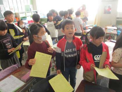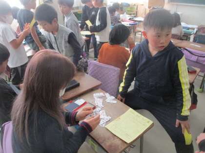 2年生の教室では算数「九九」の確かめをしました。今日はTTの先生と一緒に確認しました。子どもたちは学習カードをもとに一生懸命に取り組んでいました。九九はとても大事です。しっかり身に付けてね!