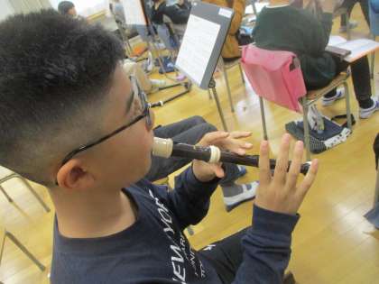 5年生の音楽を参観しました。今日は「ひまわりの約束」のリコーダー演奏に取り組みました。子どもたちは真剣に取り組みました。