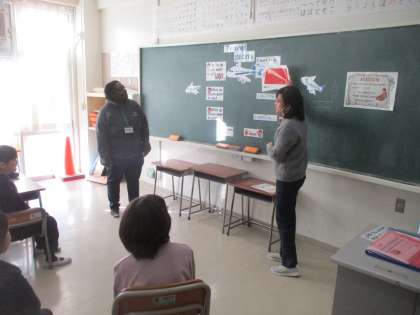 4年生を対象に「英語体験教室」を行いました。ALTが多数来校され、いくつかのアクティビティに分かれて学習しました。子どもたちは、生の英語に触れて活動を楽しみました。
