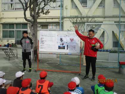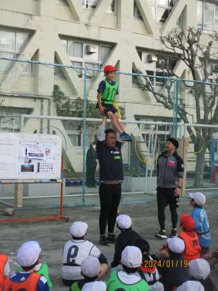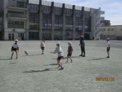 3年生の体育「タグラグビー」を行いました。今日はゲストティーチャーとしてラグビー「元キヤノンイーグルス」所属の山路 泰生さん、山田 聖也さんを講師として楽しく教えていただきました。山路さんは本校児童の保護者であり元日本代表としてまた、スーパーラグビー「サンウルブス」の一員として活躍されました。山路さん、山田さんからはラグビーだけでなく身体の動かし方や運動の楽しさをご指導いただきました。とても楽しい時間となりました。ありがとうございました。