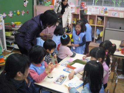 4月から幼稚園に入学する子どもたちの1日入園の日でした。たんぽぽ組の部屋の中で、遊びます。いっしょにいると自然と遊び始めます。子どもは遊びが大好きです。入園児の子どもたち、4月から幼稚園は楽しいですよ。保護者の皆様、あいにくの雨の中、ありがとうございました。