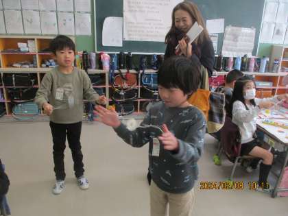 2月8日(木)1年生生活科「ビュンビュンごま」