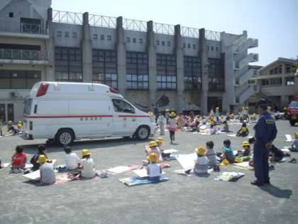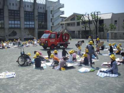 今日は晴天の下、成城消防署及び消防団の皆様にご協力いただき、1年生が写生会を行いました。消防車や厩舎を目の前にして子どもたちは大喜びです。画用紙にのびのびと描いていました。成城消防署及び消防団の皆様、ありがとうございました。