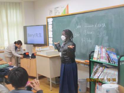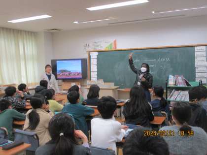 イングリッシュウィークとしてケニア人のALTが毎日来ています。そして、各学級で授業を行っています。ケニアの自然や生活についてなど、外国の文化についても触れています。子どもたちは興味深く話を聞いています。