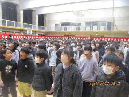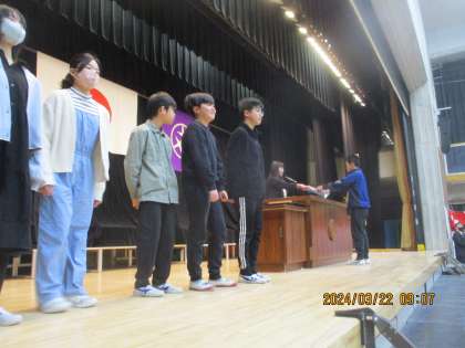 令和5年度修了式を行いました。落ち着いた雰囲気の中、一人一人がこの一年の成長を振り返る機会となりました。25日は卒業式です。保護者の皆様、この一年本校の教育活動にご理解とご協力を賜り感謝申し上げます。