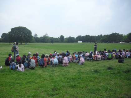 後半は大きな原っぱでのお弁当と遊び。広い広い原っぱで気持ちよく過ごしました。
