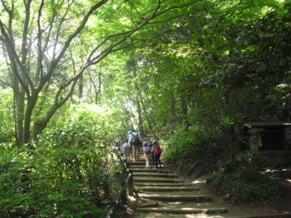班ごとに分かれ、チェックポイントを通りながら山頂を目指します。