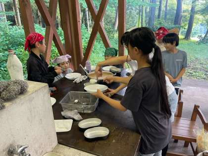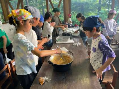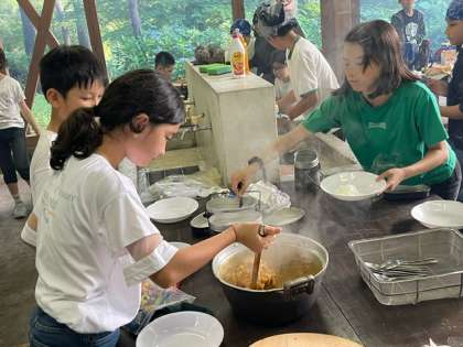 おいしそうなカレーと炊き立てのご飯の香りが漂ってきました。自分たちで盛り付けをして、おいしくいただきました。