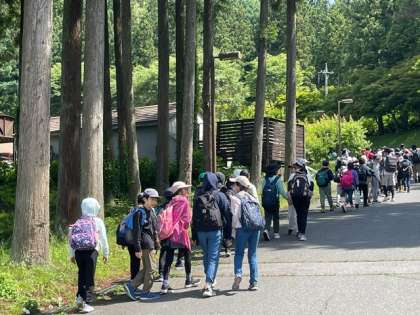 予定通り、9時30分にヒロイド原ハイキングに出発しました。川場はとてもいいお天気です。水分をこまめにとりながら自然の中を歩きます。