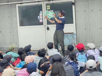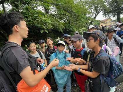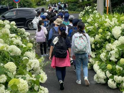 晴れ間も出てきました。その分、暑くもなってきました。途中休憩場所で、先生からアメを一つ受け取り、なめました。目的地の一つ、宮田農園さんに着くとすてきなお話をうかがいました。