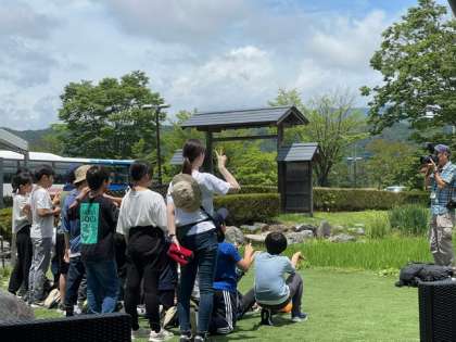 最後の集合写真を撮り、待望のおみやげを購入しました。家族を思う子どもたちが多かったです。午後1時30分に田園プラザを出発しました。高速道路は現在のところ順調です。レクを楽しむクラス、ビデオを見ているクラス、それぞれですが子どもたちは、今、東京に向かっています。14時15分に上里SAを出発しました。