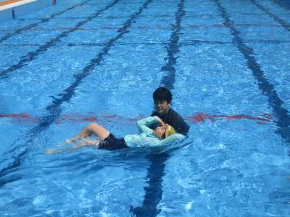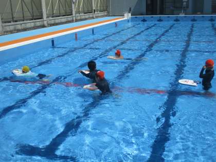 「目標は、背泳ぎができるようになりたい。」と言って、背泳ぎの姿を見せてくれた友達もいて、みんなそれぞれの目標に向かって泳いでいました。