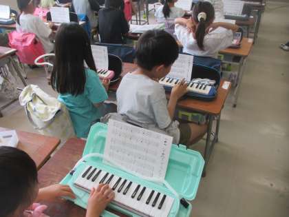 3年生は、「エーデルワイス」をリコーダーで演奏するために音階を確かめていました。音楽の授業はみんな楽しんでいました。