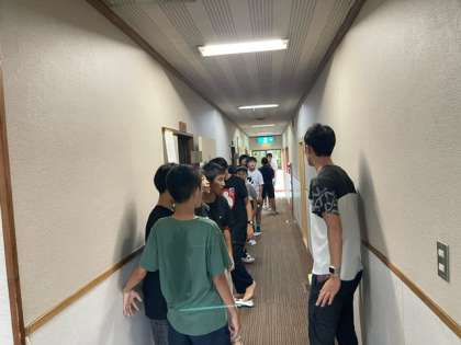 予定通りに宿舎に着きました。宿舎の皆様に感謝を伝えることを大切にしながら開園式を行いました。宿舎の皆様に「よろしくお願いします」の気持ちをしっかり伝えた6年生、立派です。その後は避難訓練です。避難経路の確認をしっかり行いました。