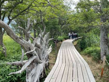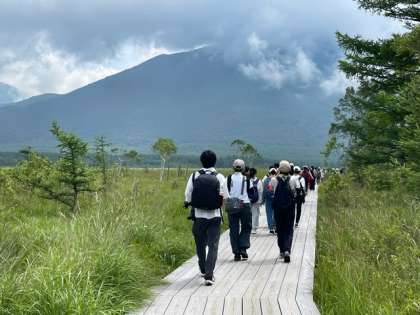 ハイキングの途中、男体山が見えました。お天気が心配でしたが雨になることもなく、自然の中をゆったり歩くことができました。